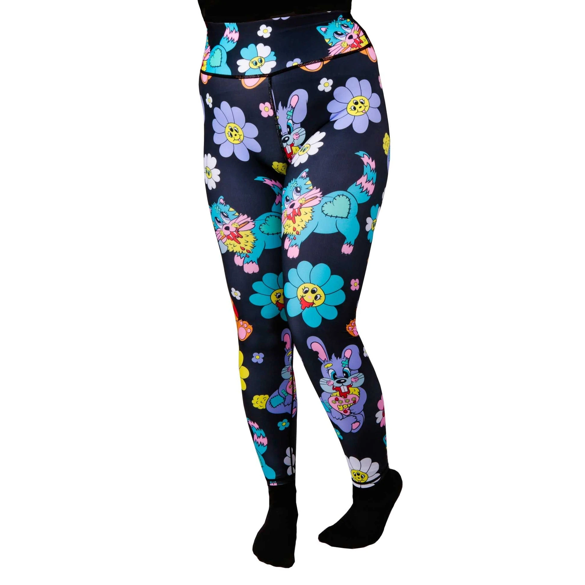 Did I scare you there? These leggings are covered in our chilling and bloody animals, including bunnies, bears and cats, on a black background and finished with matching black stitching details. High-waisted for extra comfort and confidence when moving around, add them to your wardrobe today to feel shockingly great!