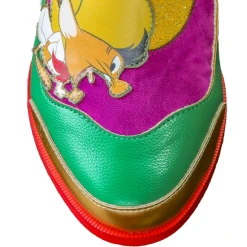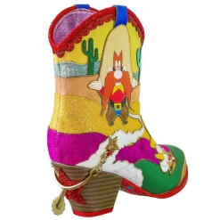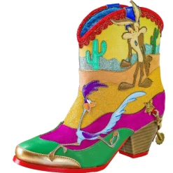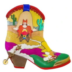 Are you feeling like the rootinest tootinest fashionista around? Slide into these cowboy boots and shoe everyone who is sheriff! Featuring western inspired Looney Tunes characters, Wile E Coyote, Roadrunner, Speedy Gonzalez, and Yosemite Sam, these gorgeous boots are sure to cause a stir wherever you wear them! Topped off with spurs on the heels and a gorgeous southwestern silhouette, these beauties are sure to become fast faves in your collection!