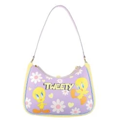 Featuring a cute repeat Looney Tunes print of Bugs Bunny, Daffy Duck, Tweety Pie, and Sylvester The Cat.