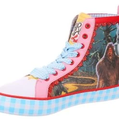 Get practicing your skip, these lace up beauties are sure to take you on all the adventures! Featuring imagery of Dorothy™, Toto™, The Scarecrow™, The Tin Man™ and The Cowardly Lion™, against a stunning landscape from the movie, these high tops are the perfect party piece. A chunky sole is decked out in blue gingham print, which matches the fabulous ribbon laces! So lace them up and get skipping!